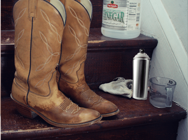 First of all, wipe them with cleanser and heated water. Later on, mix one part vinegar with one part water and spray over your boots. Wipe this using a clean fabric. Finally, apply conditioner and shower a waterproof mixture over them.