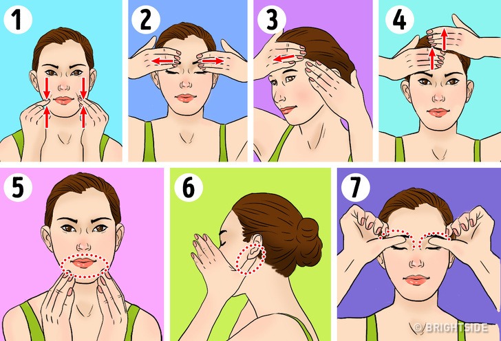 Firmly try to press your skin from the center of your forehead and then slide your fingers towards the temples.