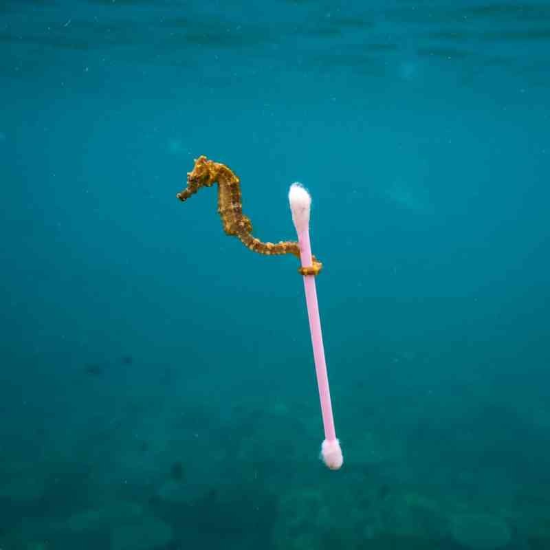 The next one will show us how the photographer Justin Hofman tells us how much the issue of pollution in the oceans has increased over many years. He also swam in the midst of the garbage to capture this image.