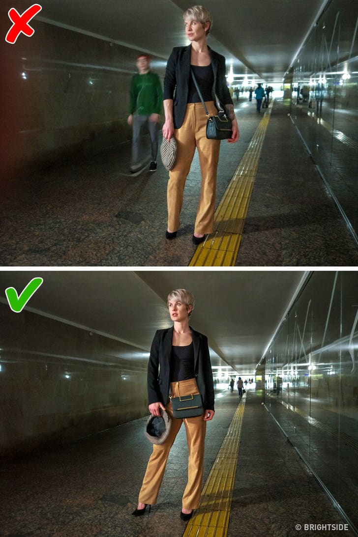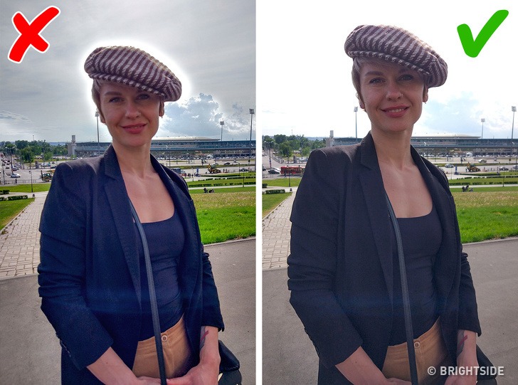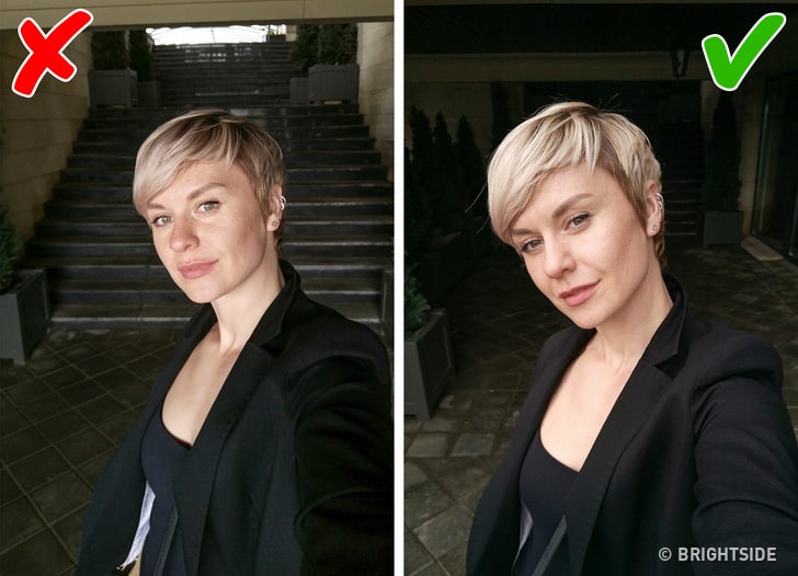 Good lighting is the way to go for good photos. Notice the picture above and see how light plays an essential role in photography. The photo on the right has the model capturing the soft light grabbing all the attention to herself and leaving unnecessary details in the dark. You need to have the right amount of light either in front of you or (if you are experimenting) at the back. Also, remember to not go overboard with it.
