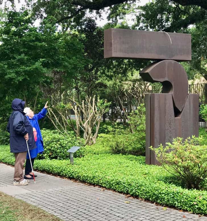 14. In this picture, this old lady is so sweet, and her husband is blind, and at the art museum, she is describing each sculpture to him so that he will also be able to enjoy it.