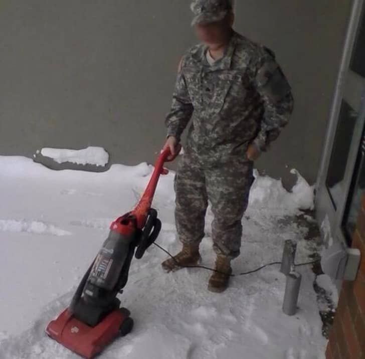 Look at the person in the picture below. He is using a vacuum pump to clean up the snow in his room, but then he also has to cover himself to collect it out. And hence the results are in front of you.