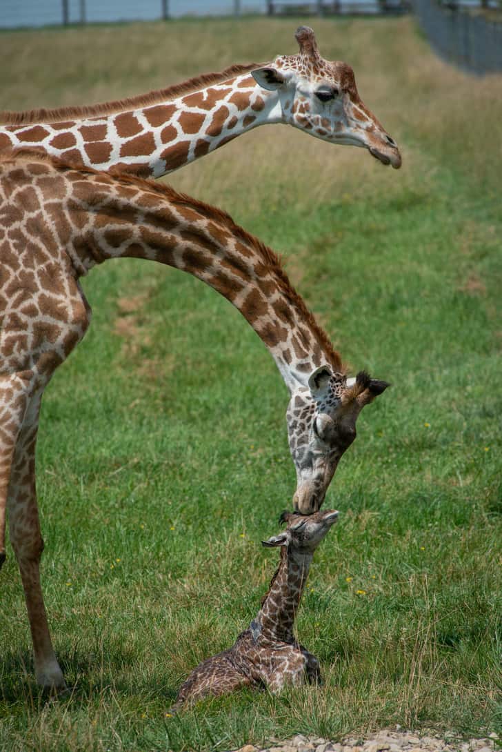 10. A SUPERCUTE PICTURE OF A BABY GIRAFFE GETTING A KISS FROM MOTHER GIRAFFE