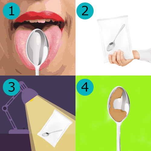 • Take a spoon and lick it completely with the help of your tongue. It should be entirely covered with saliva.