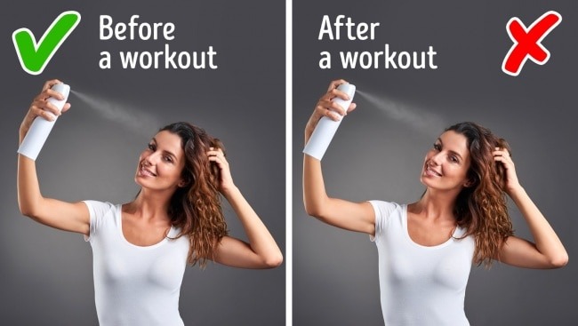 Before a workout, use dry shampoo.