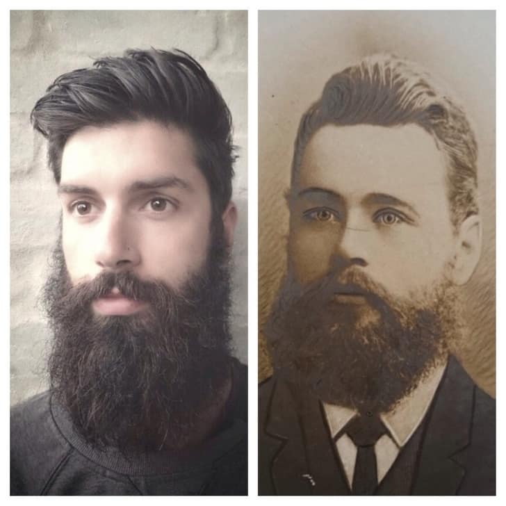 Isn’t it just wonderful to see that these similarities go so far back in the past? The beard, the nose, the hair and even the tuxedos, everything is way too alike. They had to be the fashion icon of their time.