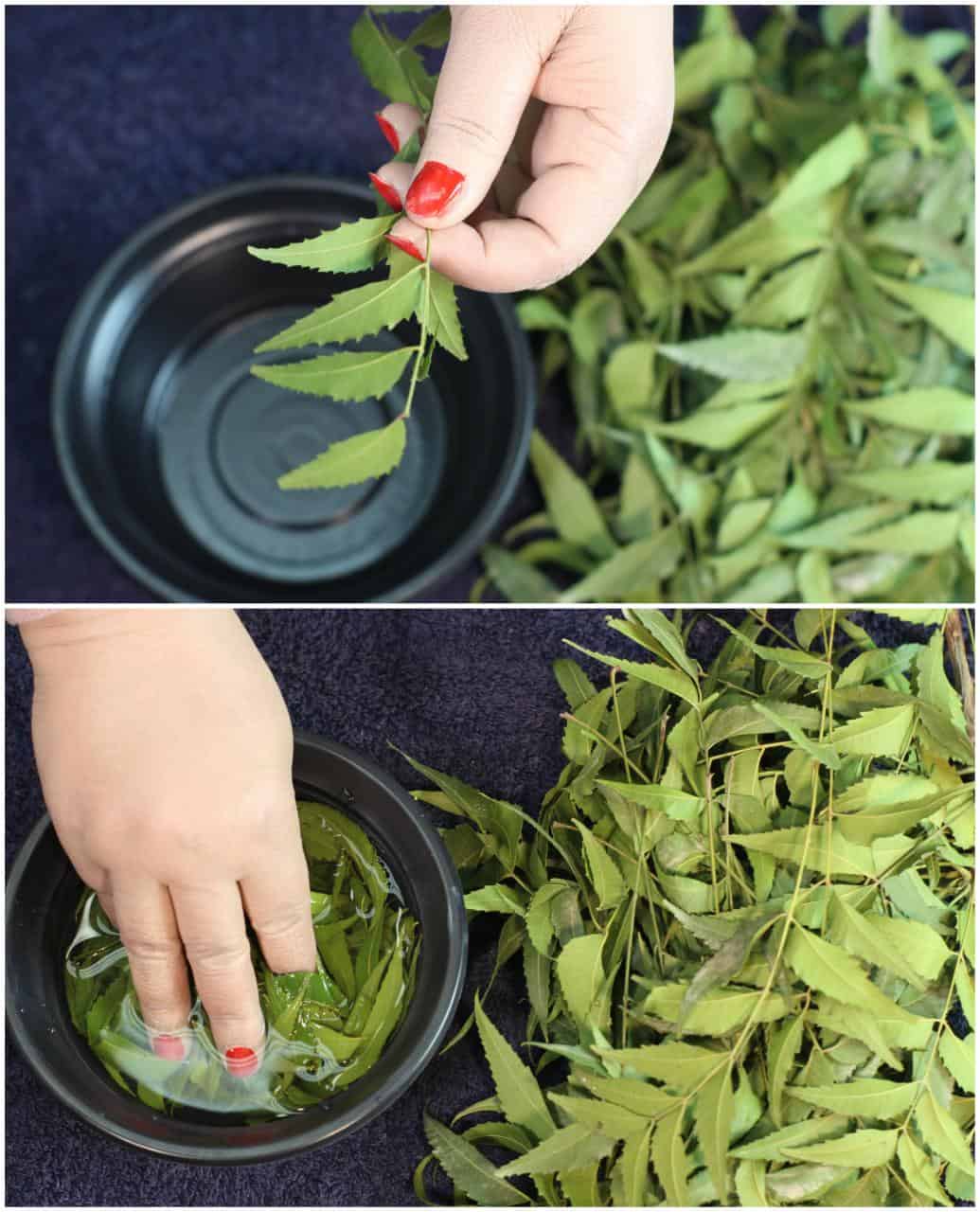 In very first step take the neem leaves and wash them off with the help of water and your hands. But you need to make sure that there is no dirt left behind on the leaves.