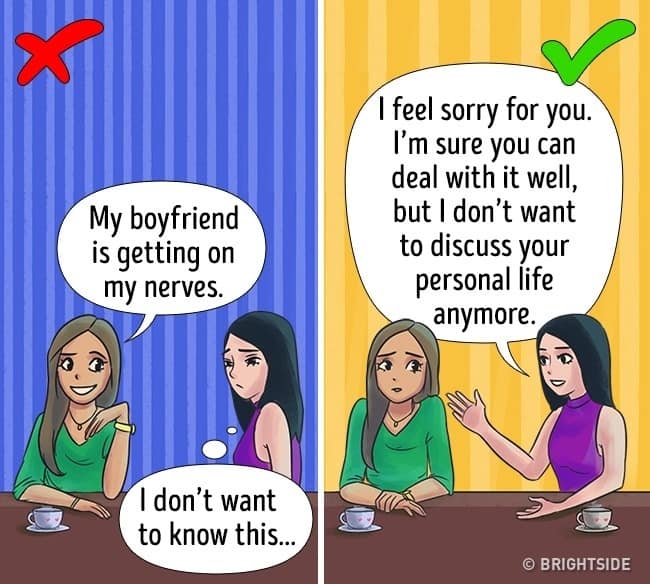 Sometimes it is good to say ‘No’ to the favor you don’t want to do. Girls always talk about other people and their personal life. It is good to avoid these types of conversations and get rid of them. The unpleasant and unnecessary discussions bring tension and stress to our lives.