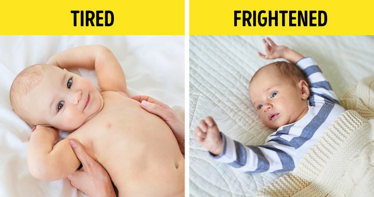 - Jerking their arms: This movement is the sign of a baby’s frightening.