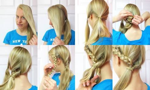 In this, first of all, you have to French braid one side of your hair, starting right from the hairline, to the end. Secure it with a string or band. After that, gather all the remaining hair, make a ponytail, and then fasten it again with a rubber band or a string. Then take a sliver of your hair, wrap it around the hair tie, to conceal it and then pin it up. Simple!