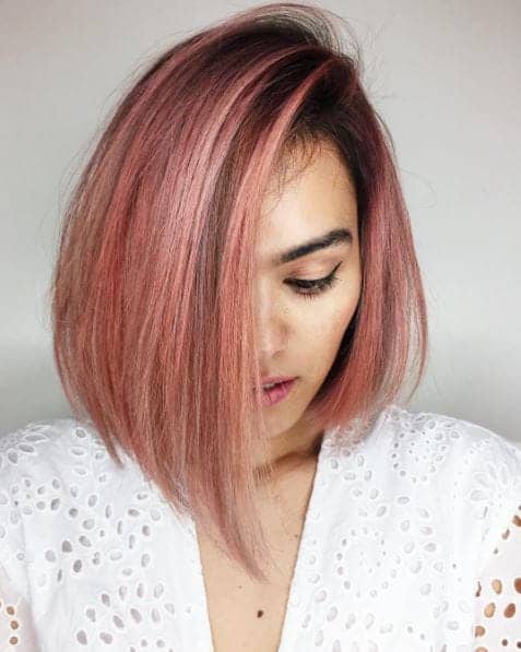 It’s a refreshing new take on the pastel hues we’ve seen for years now. This rosy coral hair color is bright, unique, and subtle, all at the same time. Dark brows and roots blend well this light, eye-catching color.