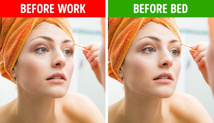 If there are extra hair on your eyebrow and upper lip, then leave them as it as till evening. It is rare that someone will pay attention to the excess hair. Instead, the redness, inflammation on the plucked hair can get easily seen by others. These spots cannot get diminished by using makeup.