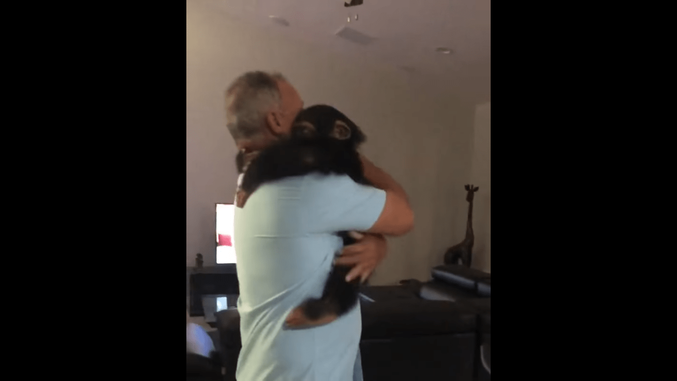 Limbani gave a tight hug to the human who is the best friend of him. The love between the both of them made us feel that we should capture them with us for the lifetime. See how Limbani heaped into the arms of the man whose name is Jorge. Limbani clings to the man for one moment when he saw him. And then he made the same with Jorge’s wife whose name is Tania.