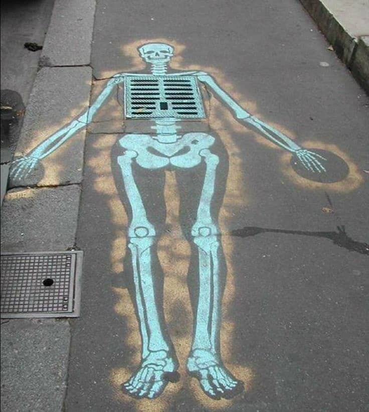 Oh God, it is a skeleton on the drainage grates. It seems a bit scary if someone looks at this from far away. But don’t get afraid of such things.