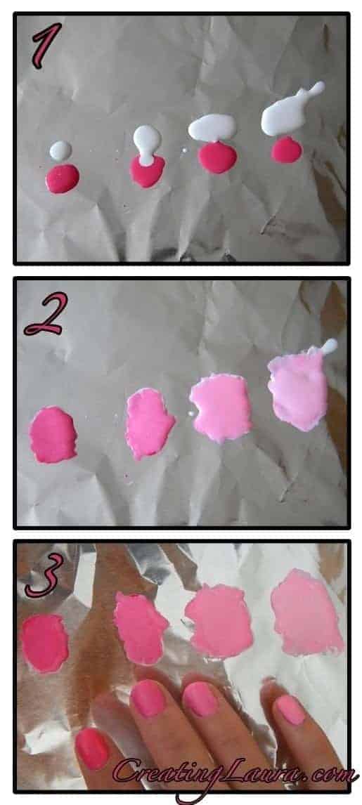 You can get a gradient effect by Adding some white polish for the first nail, some more for the second, even more for the third, and so on.