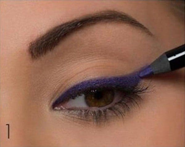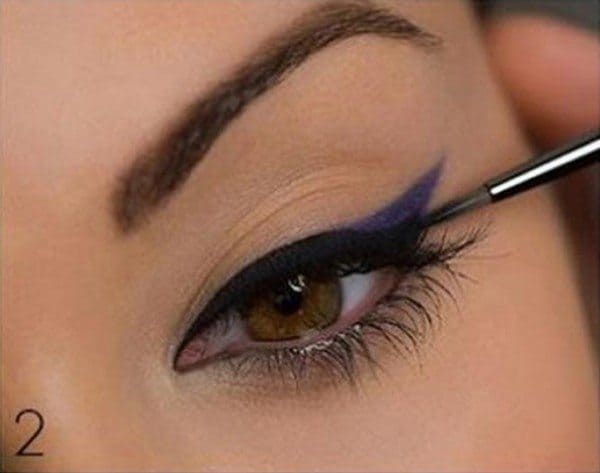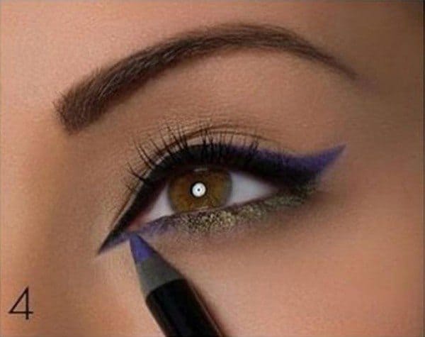After you’re done with aqua color, use a regular black eyeliner next. Make sure to give it a cat eye effect.