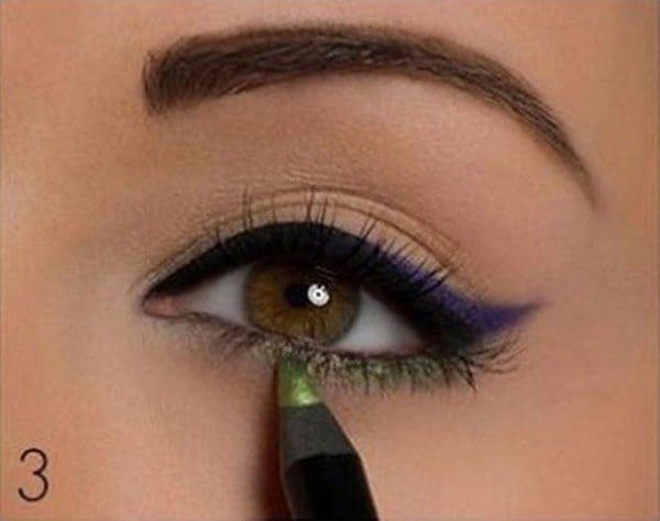 To complete the entire look, draw a thin line using your aqua liner towards the inner corner of your lower lash line. This will make your eyes pop out. Join this line with the line made by glittery eyeliner.