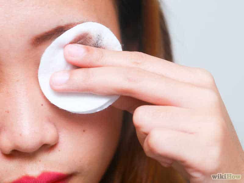 Open the pores using streamed water for a short span of time and remove makeup properly. Again, always be gentle with eyes, you don’t want to be rough here, or else your eyes will be irritated and turn red and puffy.
