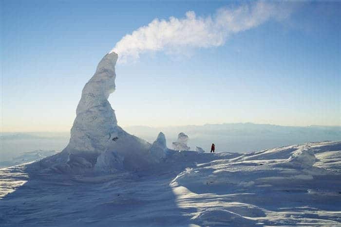 Nature is beautiful even in the world’s coldest places. Steam is coming out from an active volcano.