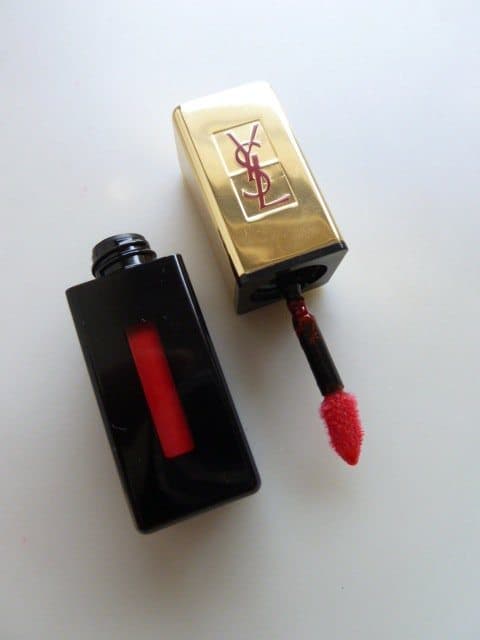 The color of YSL Rouge Pur Couture Glossy Stain lasts for about 5 to 6 hours, and the stain lasts for another 3 to 4 hours. It is a liquid lipstick and gives a glossy finish. The pigmentation is great and is very lightweight. It hydrates the lips and gives beautiful glossy shine finish. Evenly and smoothly applies without does not feather or bleed.