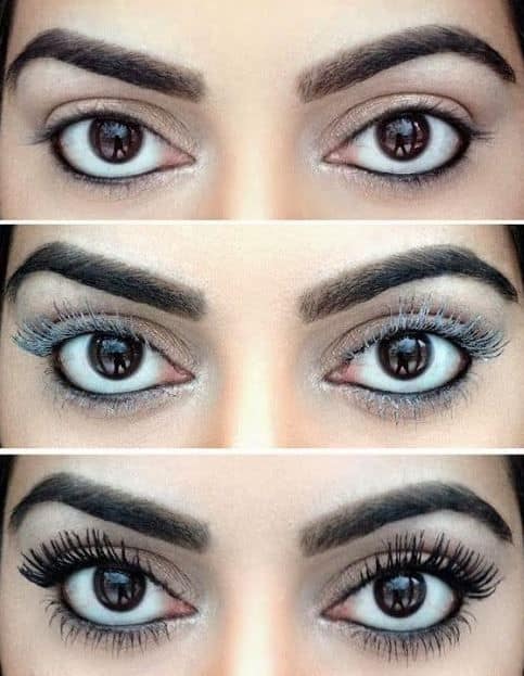 Coating your lashes with baby powder in between the mascara will help them appear Thicker: