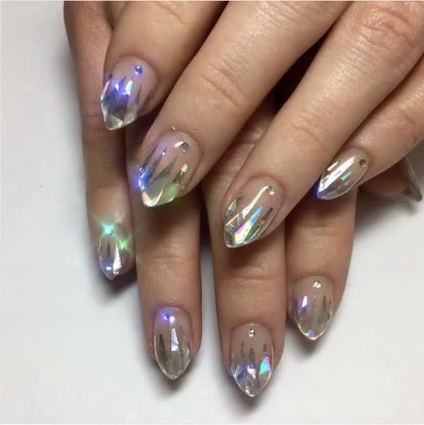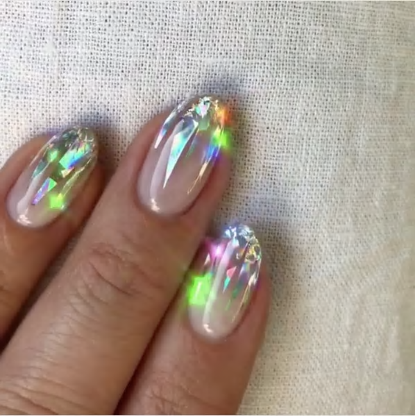 These beautiful, reflective, enchanted unicorn nails: