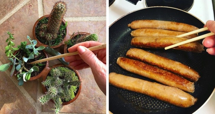 As we are not using chopsticks regularly in our kitchens but even then these can help us a lot. We can pick up food with chopsticks while grilling, sautéing, stir-frying, and deep-frying our food. We can toss the salad, scramble eggs and noodles and make kebabs with dental floss.