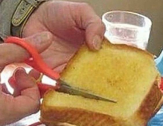 We do not know that what the guy is planning to do but it is a rule that we cannot cut a sandwich with the help of a scissor. We must be ok to cut it with your hands.