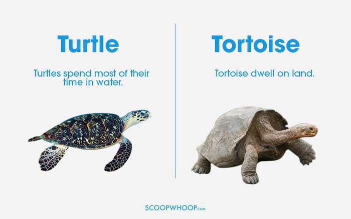 These things that we think are alike but are not. No matter both of them exist on both land and water, but turtles spend most of their time in water whereas tortoise on the ground.