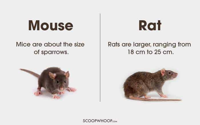 It is a blunder mistake that we generally make. Nobody can easily identify which is the rat and which is the mouse because of their same appearance with certain changes in their sizes. A mouse has the size of the sparrow, and the rats have a size ranging from 18 cm to 25 cm.