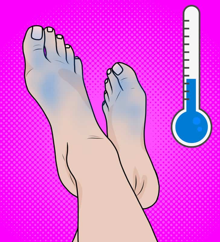 The prime feature of this condition is that the clour of your feet gets changed. This happens due to the disturbance in the blood circulation.