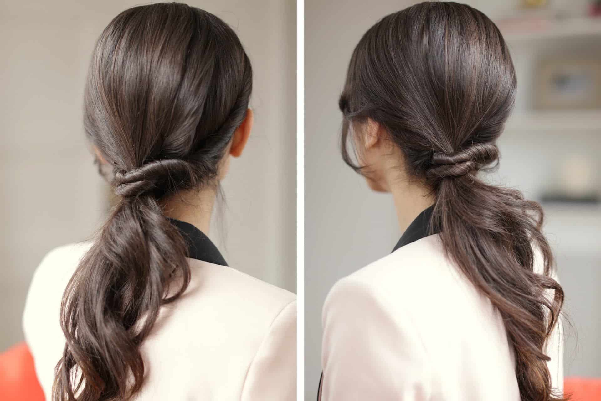 Knot pony is a simple and trendy ponytail. To make this hairstyle, take one of the hair ends and cover it with the elastic band. When done, it will appear as a knot on the pony and will give a very chic look.