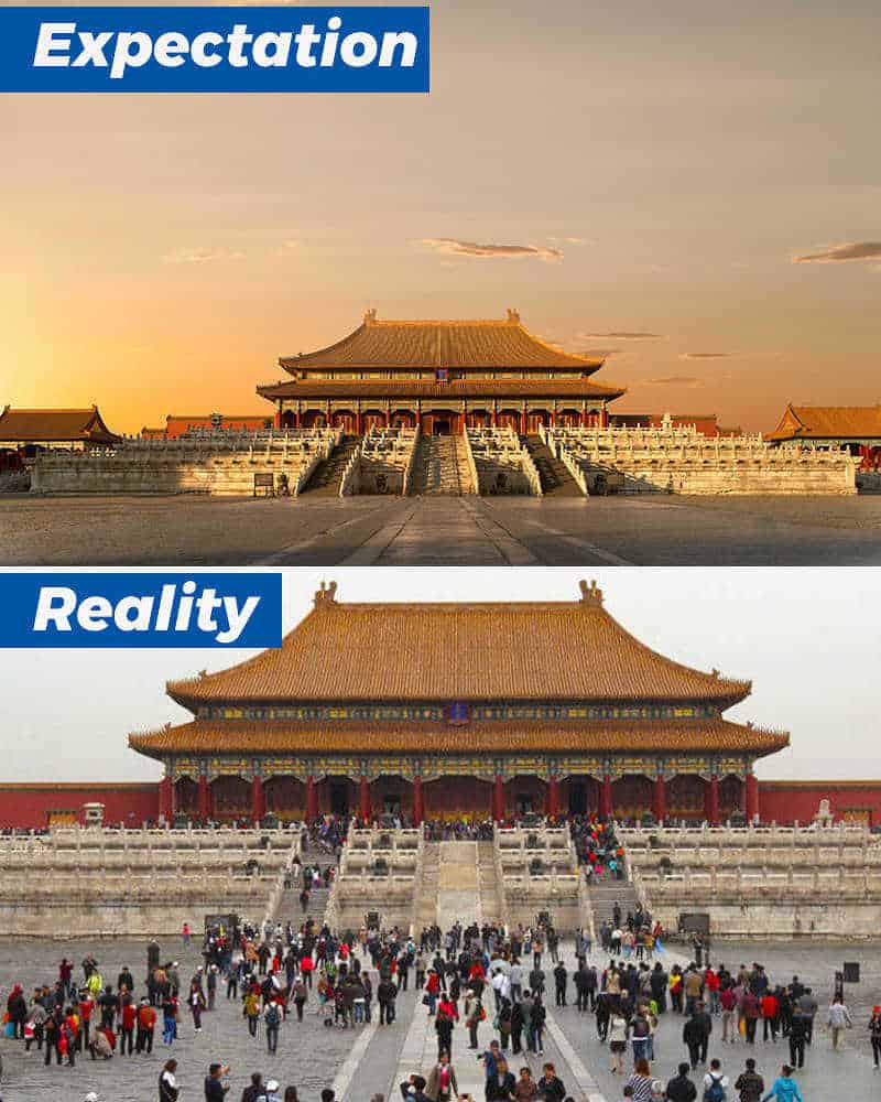 The Forbidden City in Beijing is in China. It is an elaborate palace in central China. It is the imperial palace from the Ming dynasty to the end of the Qing dynasty. There is a lot of difference in our expected photograph and the actual place.