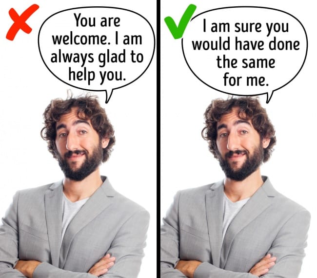 “You’re welcome” can be well replaced by, “I think you would have done the same if you were me”. Sounds sweet, doesn’t it? It can be a good conversation maker also. So do try to add it in your communication.