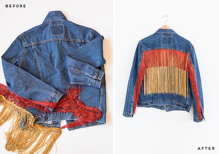 The jacket seems boring because of its color, and I am sure you must want to add something new to it. Then there is the idea for you. For this, you would need a jacket, some fringe, and little patience.