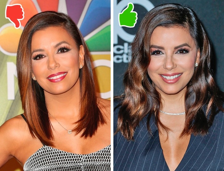 A woman looks older with evenly styles curls or straightened hair. We recommend you to have sloppy hairstyles for a younger look. Ponytail and loosened hair are perfect for a more youthful look.