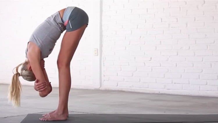 Most of the yoga artist is familiar with this pose and knows how to execute it. Stand in a neutral position, folding your body forward, taking care that your hands must reach the mat. From there, place your palms flat on the ground and move your legs back. Bend your knees for a perfect stretch.