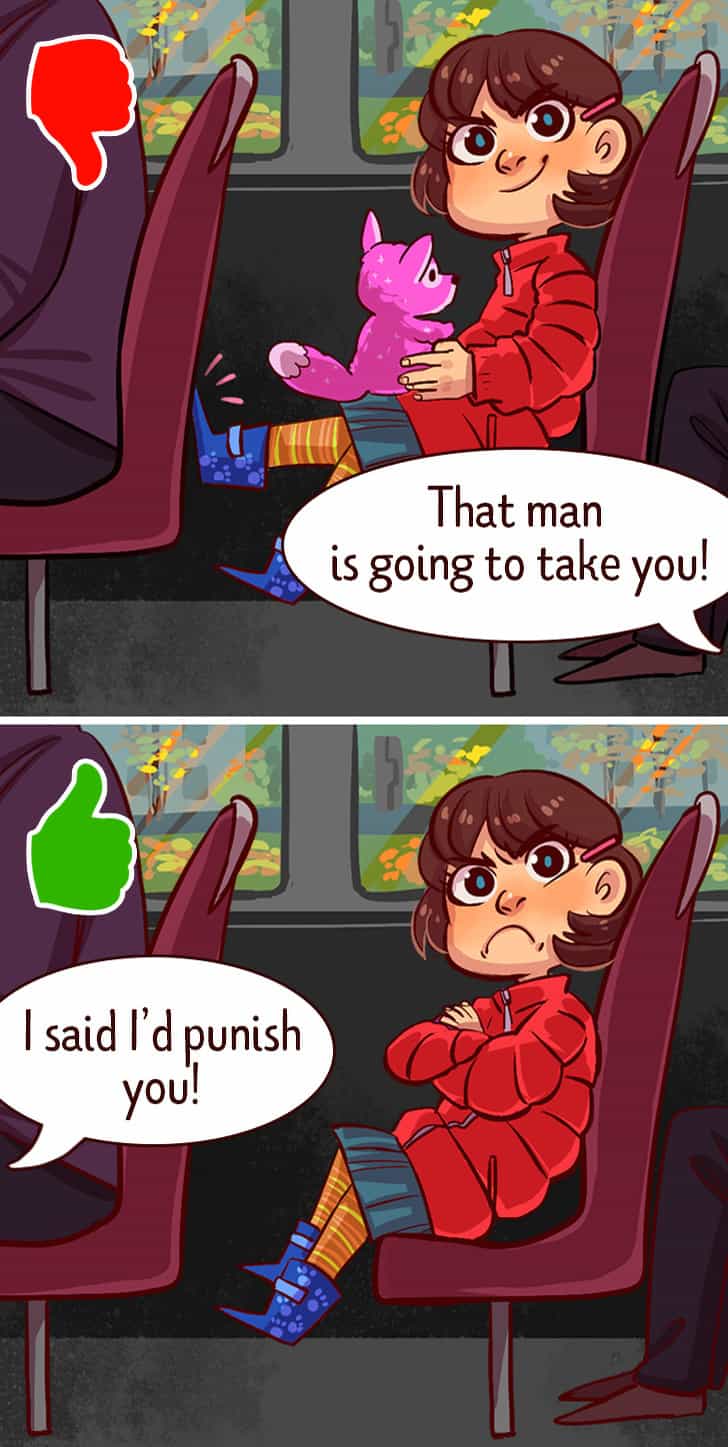 However, it suggests that if you threaten the child, then you must punish them when they go wrong. You need to explain to your child that this behavior is not normal. It is just a rare exception.
