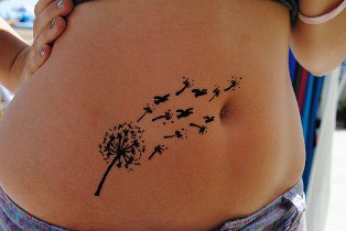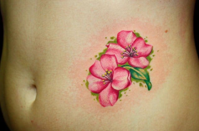But one more unique style of the belly tattoo is the small flower of the side a bit above your waist.