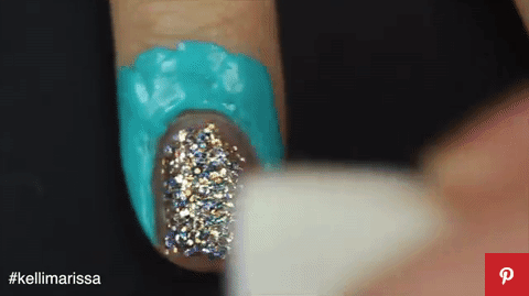 - Repeat the process of applying glitter nail polish on the nails using the sponge and cover the full area of the nail.